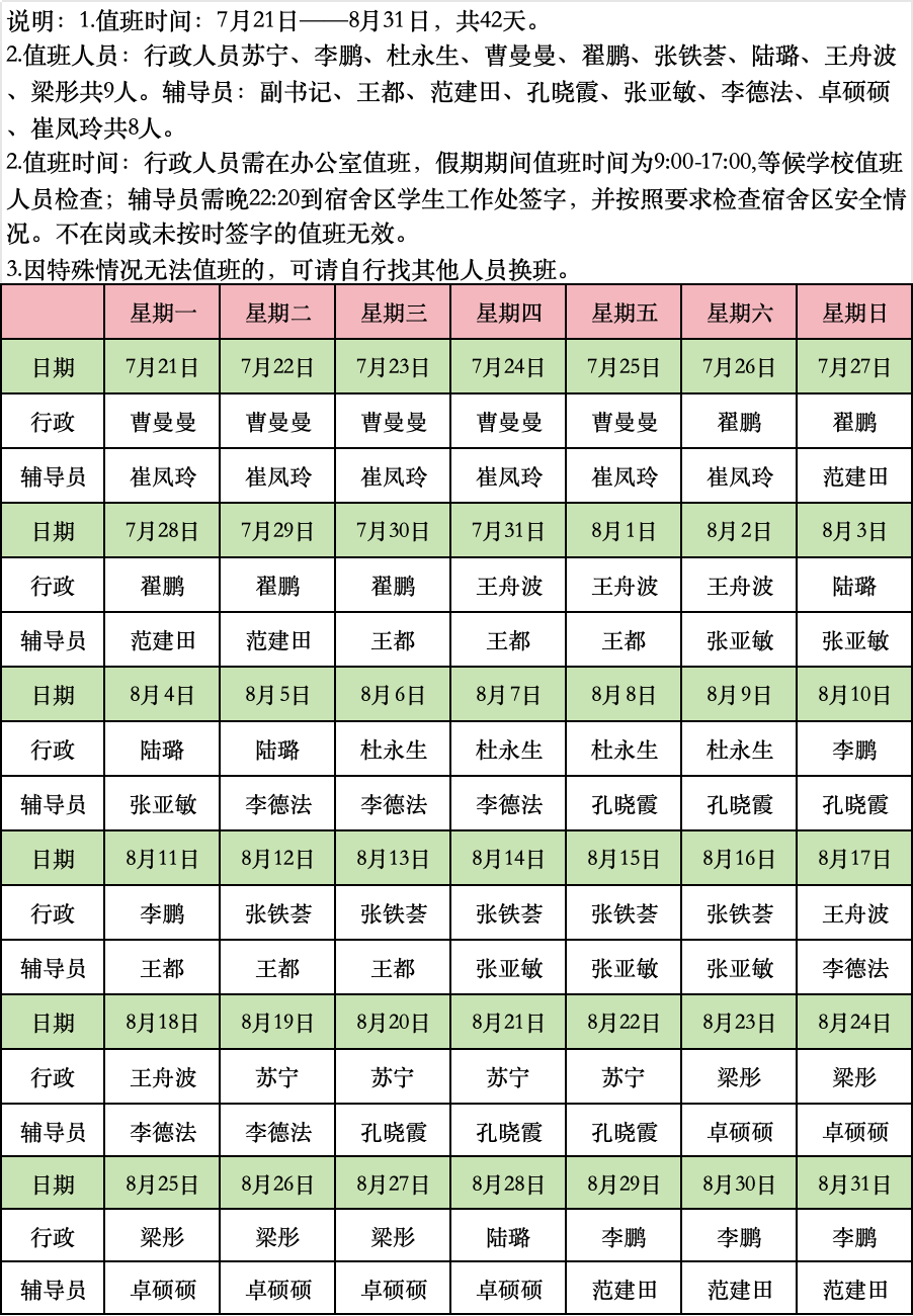 bevitor伟德国际19462025年暑期值班表