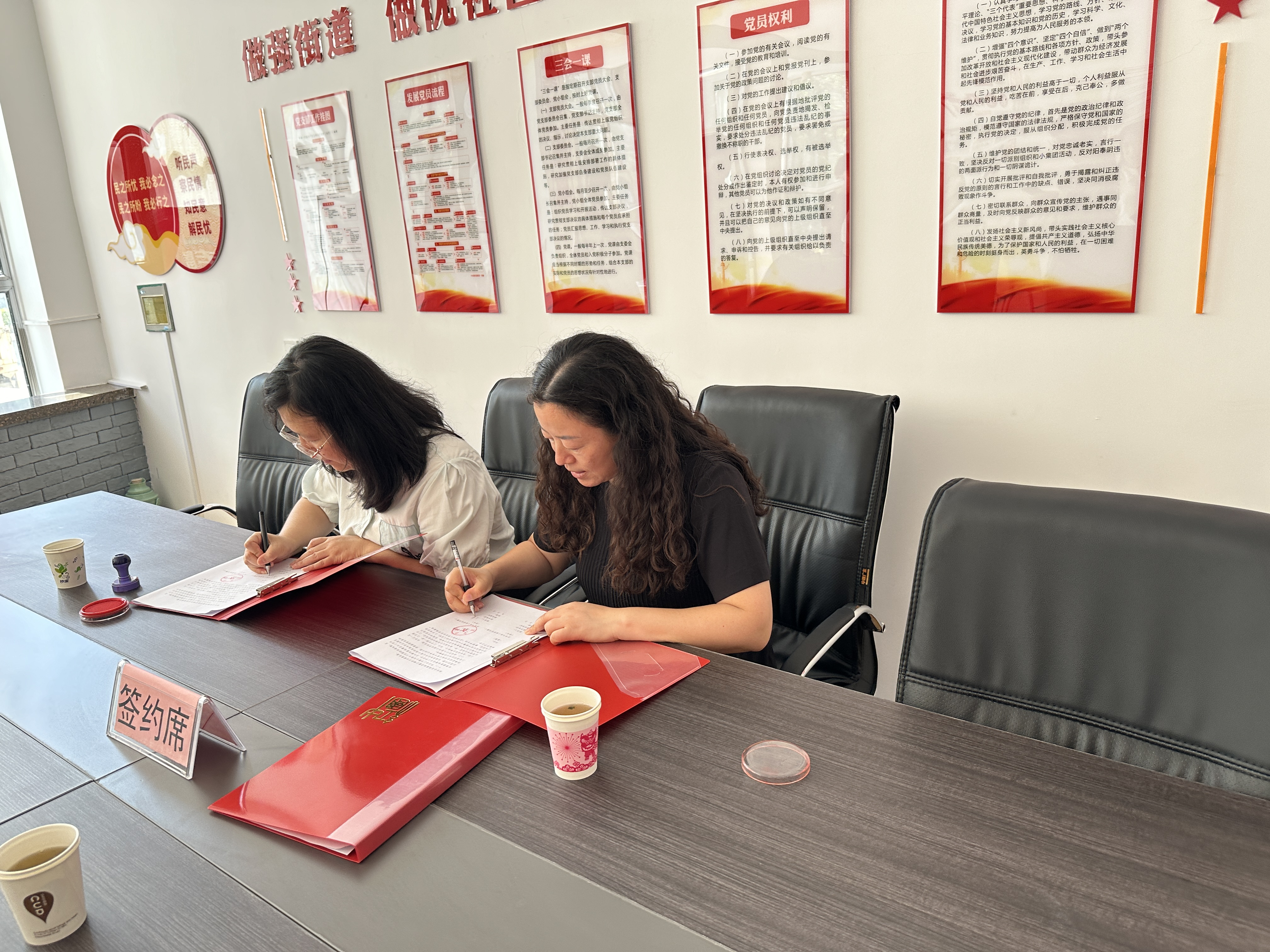 bevitor伟德国际1946辅导员孔晓霞、曲阜市小雪街道明礼社区党委书记高丽芬,共同签署合作协议。