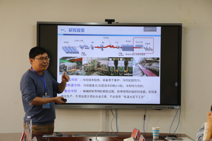 西安交通大学教授何银年针对Finite ElementMethodsfor the3D Primitive Equations of Ocean在有限元逼近的基础上,给出了在收敛条件下的最优误差估计。重庆大学副教授王坤对于Decoupled, positivity-preserving and unconditionally energy stable schemes for the electrohydrodynamic flow with variable density,指出变密度流体水动力(EHD)流的解耦、保正和无条件能量稳定的完全离散有限元格式。并提出改进的指数型标量辅助变量(SAV)方法来平衡产生的误差稳定和解耦过程的非线性耦合项。华东师范大学副教授郑海标对Non-iterative Local Parallel Algorithms for an Interface-Coupled Parabolic提出了两种新的界面耦合抛物型问题的局部并行算法。来自青岛大学的专家宋丽娜基于对三维界面问题的无网格方法研究,给出求解三维界面问题的一种高效可靠的无网格方法。来自烟台大学的专家张国栋将铁磁流体模型转化成等价的算法友好形式,进而提出了时间二阶稳定解耦格式,将复杂模型转化为简单椭圆问题求解。来自山东大学的专家鲁宁利用SEM完成合金体系的表征后,创新性的引入经济学概念“基尼系数”作为量化指标用来评估粒子分布情况。中国石油大学的专家刘恩阳设计升速轧制条件下轧后冷却前馈控制算法,开发了轧后冷却控制系统并应用于现场生产中,取得良好控制效果。