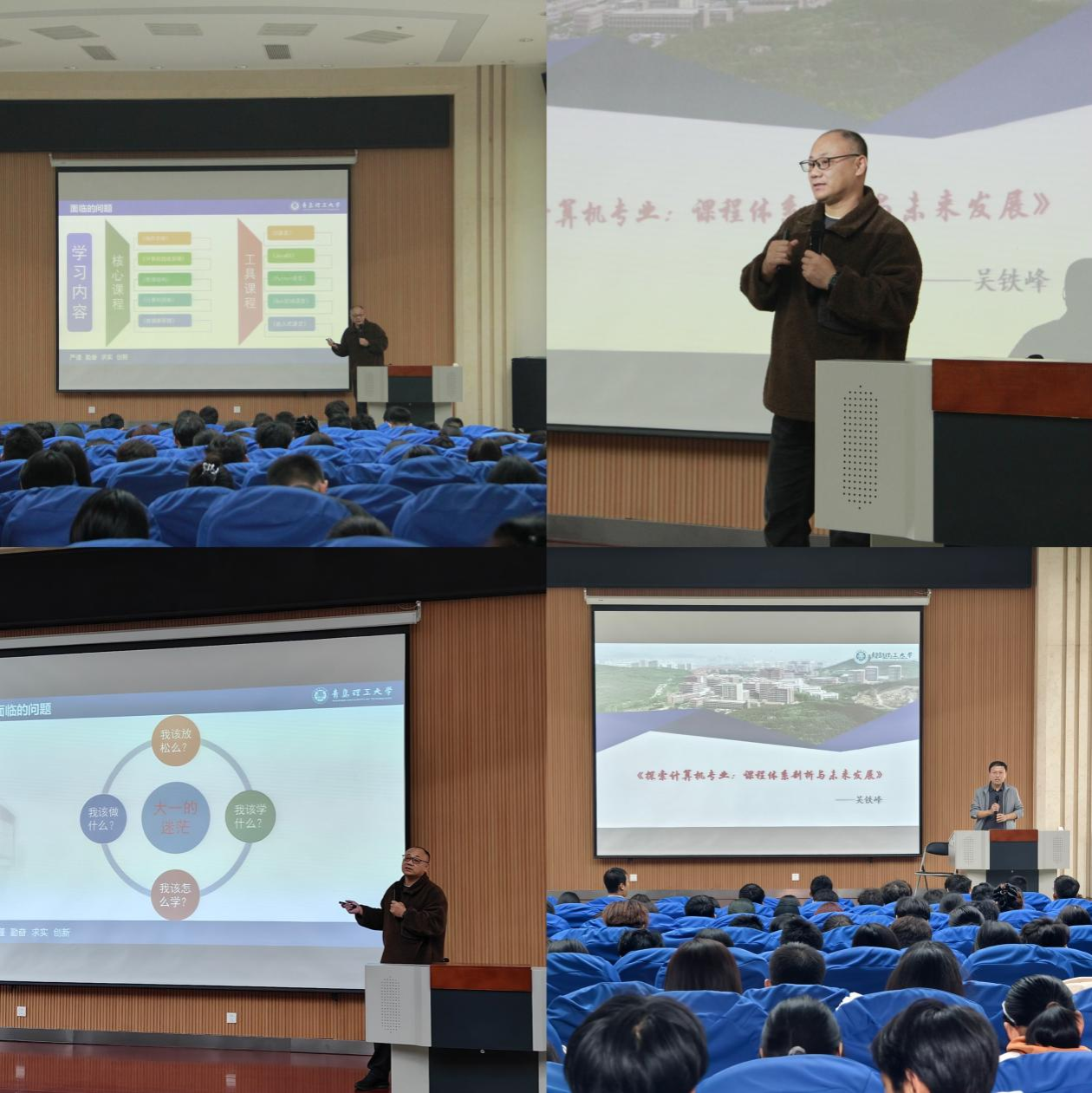 为更好的让新生了解计算机专业特点,做好专业规划,在未来的学习和就业中增加竞争力,bevitor伟德国际1946特邀请青岛理工大学信息与控制工程学院吴铁峰教授来校做专题报告,报告于10月27日下午在3号楼报告厅举行,校本部2024级500多名同学参加,报告会由院长助理张铁荟主持。