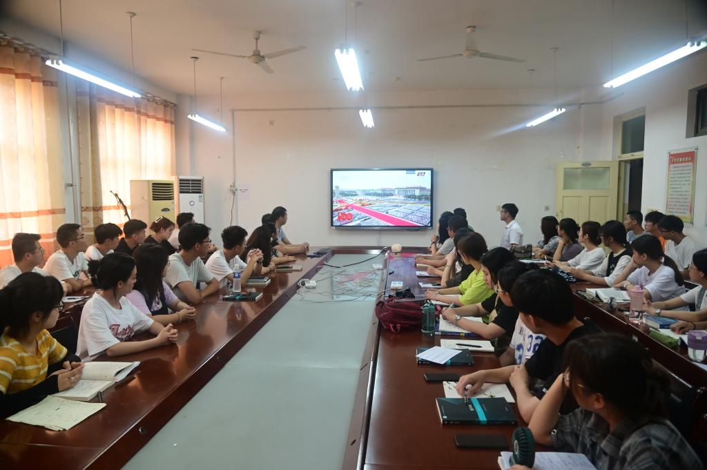 2021年7月1日8:00整,数学与计算机应用技术学院党委成员、辅导员以及学生党员、入党积极分子五十余人,在8号楼会议室共同观看庆祝中国共产党成立100周年大会直播。