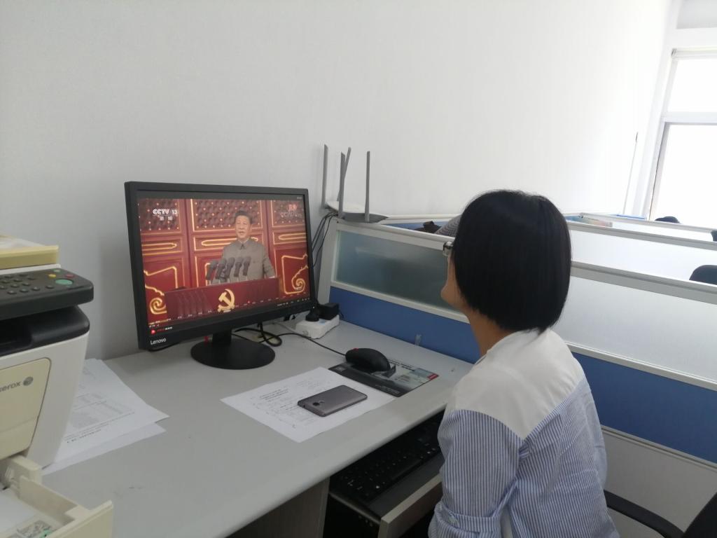 教工第一党支部组织党员以多种形式收看大会盛况。