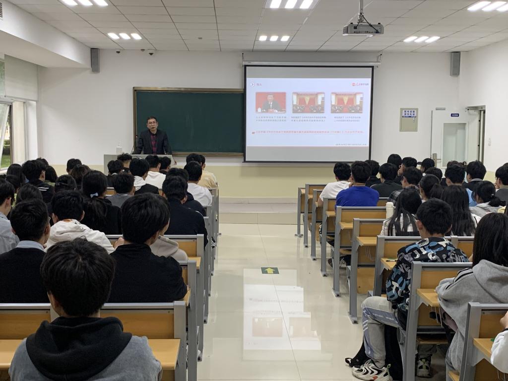 2022年5月11日,数学与计算机应用技术学院党委书记许杰以《深入学习领会党的十九届六中全会精神》为题,在理科楼B104教室为2021级虚拟现实2班和2021级英谷合作2班的学生讲授了一堂精彩生动的形势政策课。