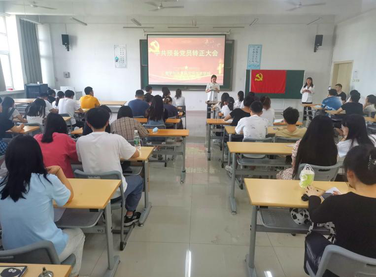 数学与计算机应用技术学院学生第三党支部于2022年5月28日上午9时,在应用型人才培养基地B2413召开接收预备党员大会。此次会议由学生第三党支部书记郑伟主持,参与会议的人员有学院党委副书记张静老师、党支部组织委员张颖老师,以及党支部全体党员和1名拟接收预备党员。