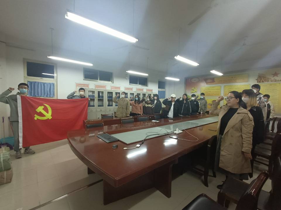 活动最后,学生党员程文婷带领全体党员重温入党誓词。鲜艳的党旗下,全体党员们高举右拳,庄严宣誓。一句句铿锵有力的誓词,表达了党员们庄严的承诺和坚定的决心,彰显了每一位党员不忘初心,砥砺前行的使命担当。