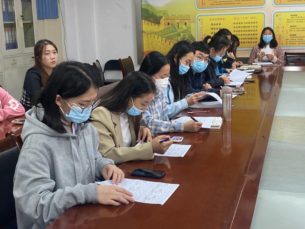 拟接受的党员发展对象纷纷表态,他们感谢党组织的接纳,表达了自己的决心,日后定要以党员标准严格要求自己,将个人的发展与国家和社会的发展紧密结合,起好先锋模范作用。最后,党委委员、学院专职组织员申莹讲话,她向14名同志表示祝贺,并对新接收的预备党员提出不忘初心、牢记使命、勇担重担、踔厉奋发的期望与要求,要切实在思想、学习、防疫、就业等各方面,以实际行动体现党员的先进性。