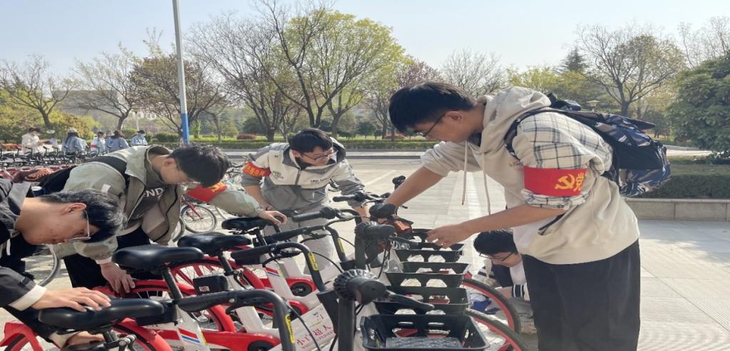 活动中,入党积极分子不仅认真擦拭了共享单车的筐篮、把手、坐垫和二维码标识牌,还将共享单车位置进行统一调整,在同学们的团结协作下,理科楼下的停车区被整理得井然有序。大家不仅用实际行动改善了校园环境,更是以自身努力诠释了“无私奉献”的雷锋精神和为人民服务的理念。