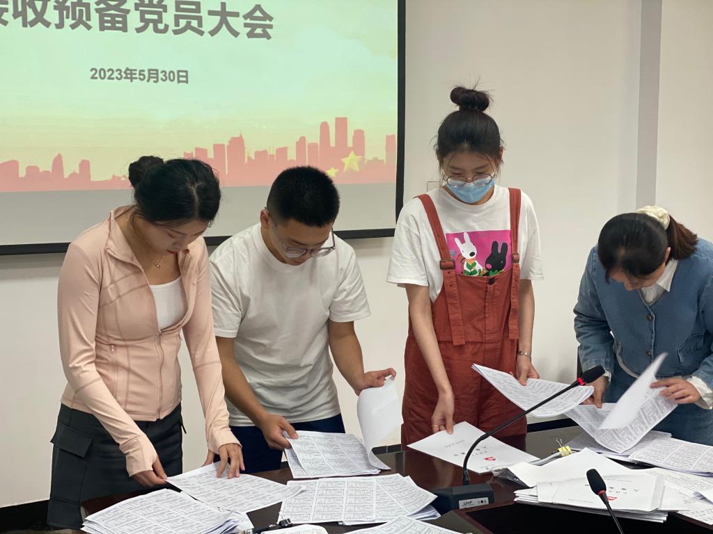 首先,尹梦菲等31名发展对象逐一宣读《入党志愿书》,汇报自身的入党动机、对党的认识、个人经历、家庭社会关系等。随后,由入党介绍人介绍该名同志的政治思想、学习、工作生活等情况。支部组织委员张薇介绍申请人的培养审查情况,与会党员对发展对象是否符合预备党员条件进行了充分讨论,通过无记名投票的方式进行表决,大会一致通过31名申请人加入党组织。