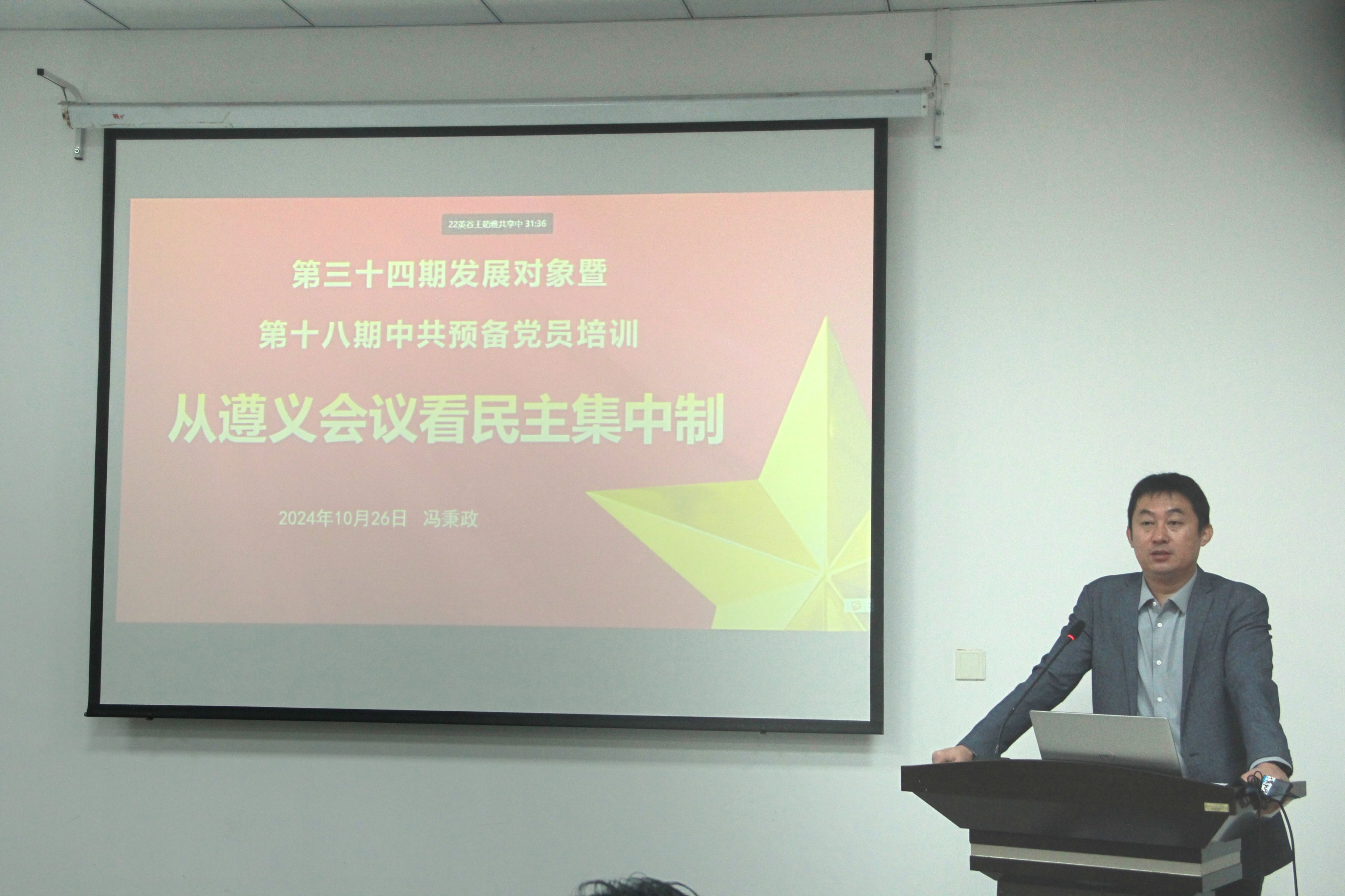 为扎实推进党史学习教育,弘扬遵义会议精神。10月26日上午,bevitor伟德国际1946党委副书记冯秉政以“从遵义会议看民主集中制”为主题开展党课,第三十四期党员发展对象、2024年上半年新发展预备党员以及转正一年内的正式党员参会。