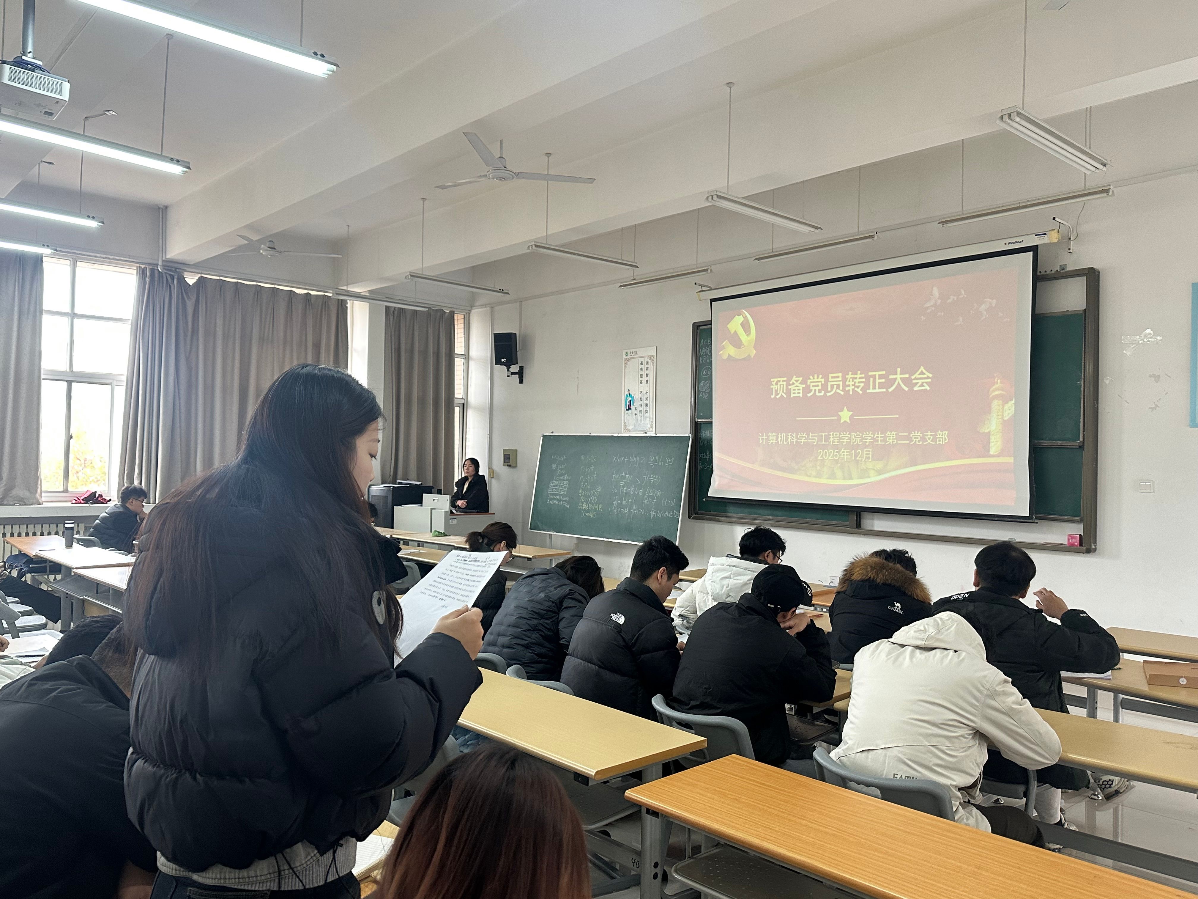 2025年12月2日下午,bevitor伟德国际1946学生第二党支部于B2#413教室召开中共预备党员转正大会。会议由bevitor伟德国际1946学生第二党支部书记崔凤玲主持,支部委员陈庆成、沙振明出席,支部全体党员及拟发展对象参加。