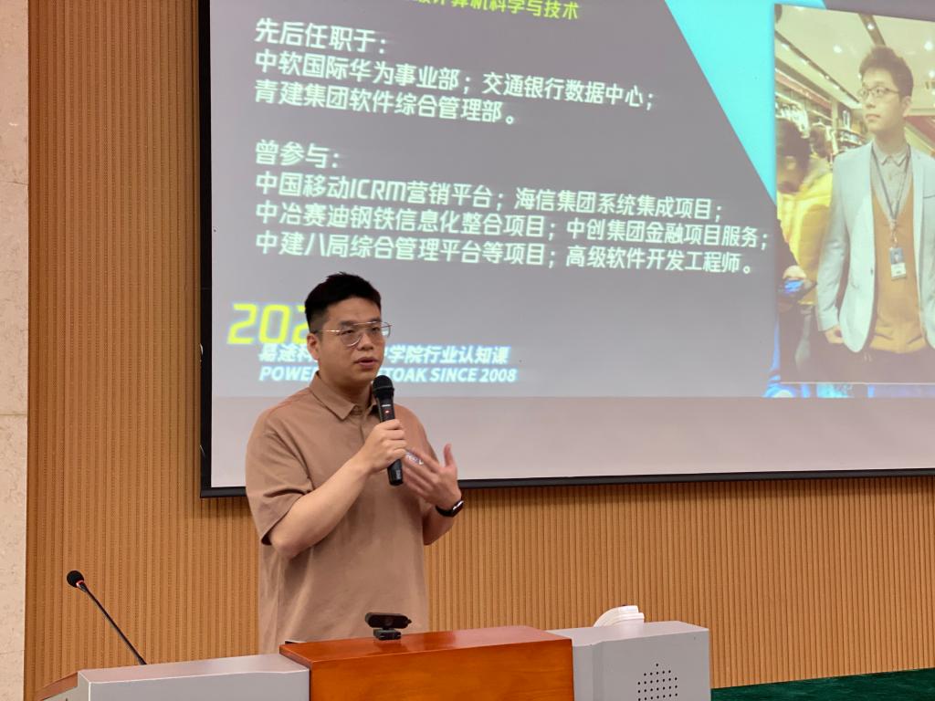 讲座邀请数学与计算机应用技术学院2018届毕业生校友王栋主讲。王栋结合自身的就业经历,深入剖析IT行业的发展现状和前景机遇,为计算机专业的同学们分析专业相关的就业形势,从心态调整、平台选择、学习效率提升、工作态度养成、沟通和表达能力提升以及创业经验积累等方面展开经验分享。他告诫同学们在大学期间和就业过程中一定要树立明确的职业规划,保持勤学好问、主动学习,鼓励同学们珍惜大学的时光,敢于试错,提升个人综合素质,重专研、讲奉献、善学习,对学习、生活、就业都保持热爱。有了良好的奠基,在面临毕业时就可把握就业的黄金时期和就业优势。幽默风趣的讲解引得现场掌声不断,同学们对学长的经验分享纷纷表示赞同。报告结束后,王栋与参会同学们就相关专业知识展开交流。