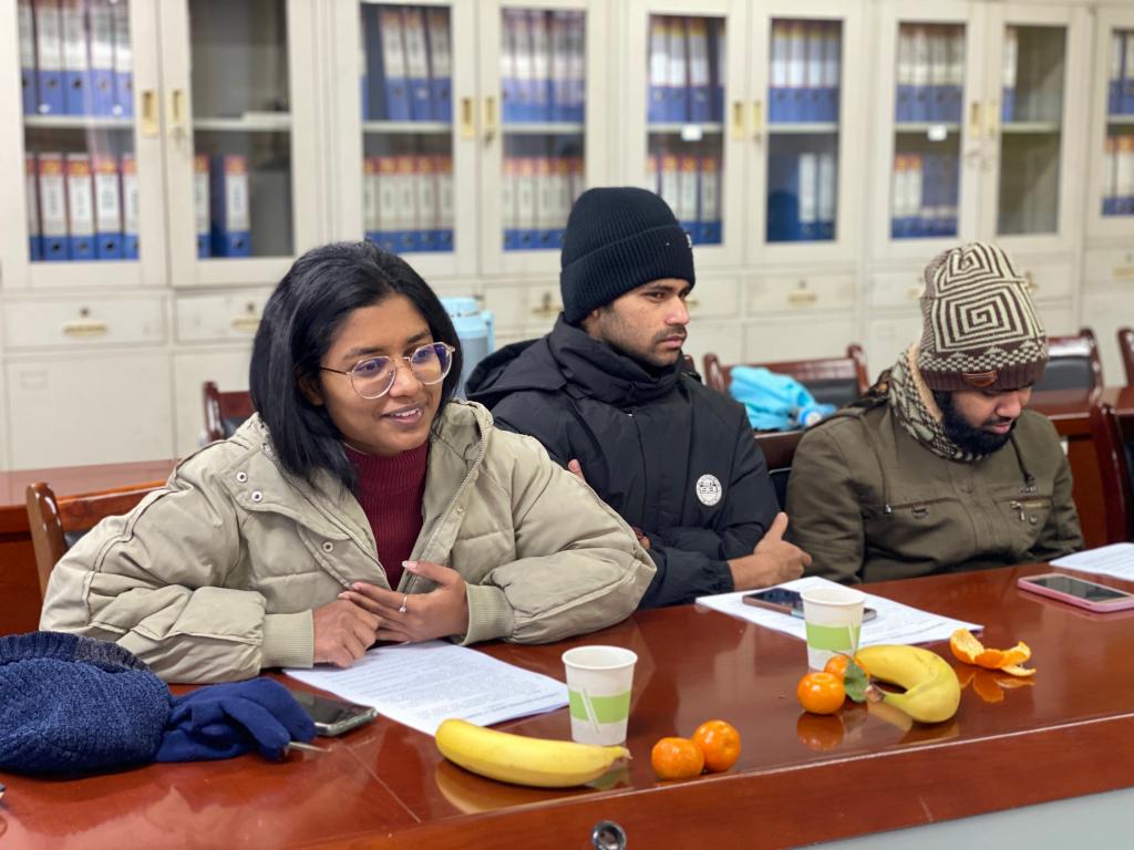 留学生MIM MD SHAKIB HOSSAIN(沙威)代表留学生进行发言,对能来伟德国际1946bv学习表示十分荣幸,他们对学校安排的学习和生活都十分满意,也在逐渐适应留学生活,并将在孟加拉积极宣传学校,介绍更多的朋友报考伟德国际1946bv。其他六位留学生也积极发言,希望加强与国内学生的沟通交流,展现留学生的精神面貌。