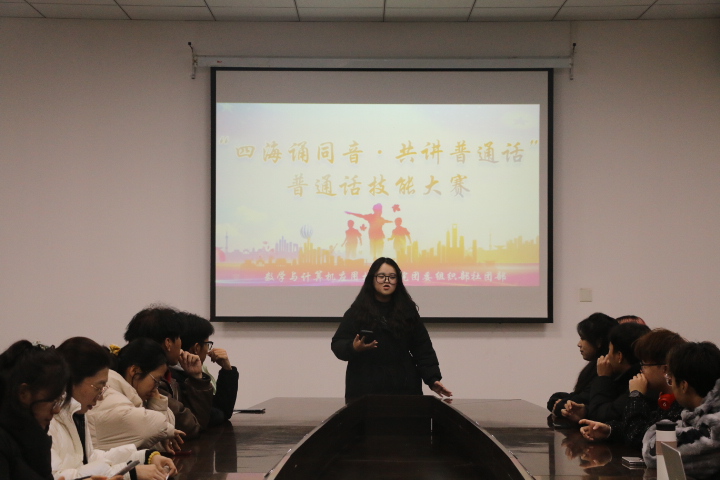 为了营造良好的校园文化环境,促进同学们之间的交流,提升师范生从业技能素养,12月12日晚,数学与计算机应用技术学院在8A116举行了“四海诵同音·共讲普通话”普通话技能大赛的决赛。辅导员王蒙蒙、崔凤玲、张亚敏出席并担任评委,学生会代表及部分2023级新生参加。