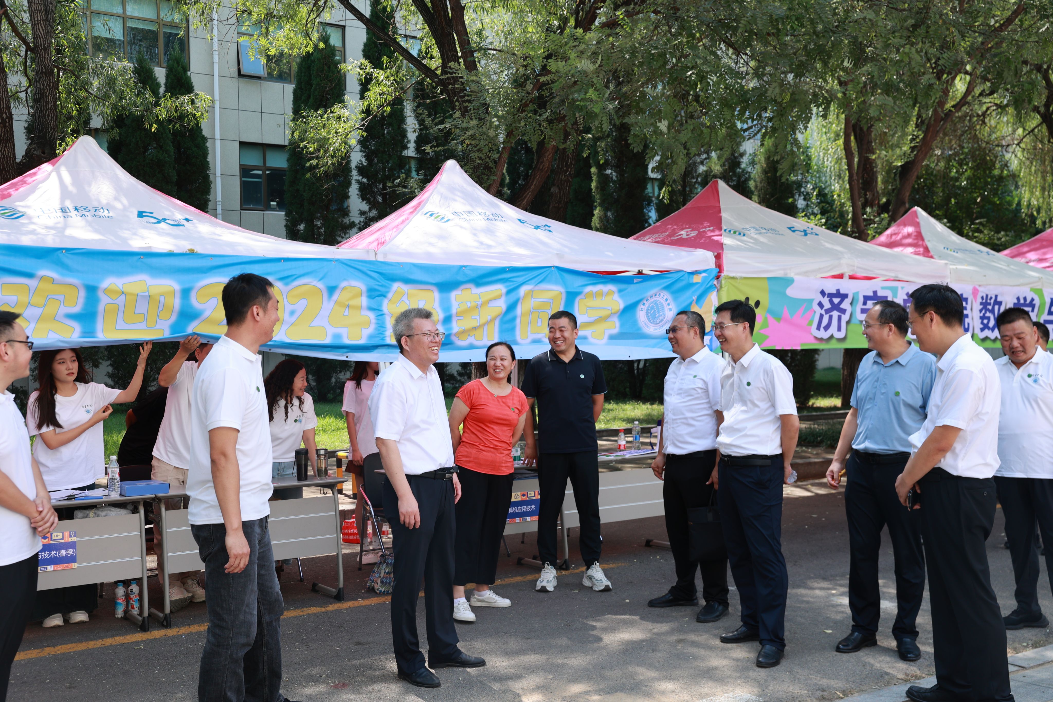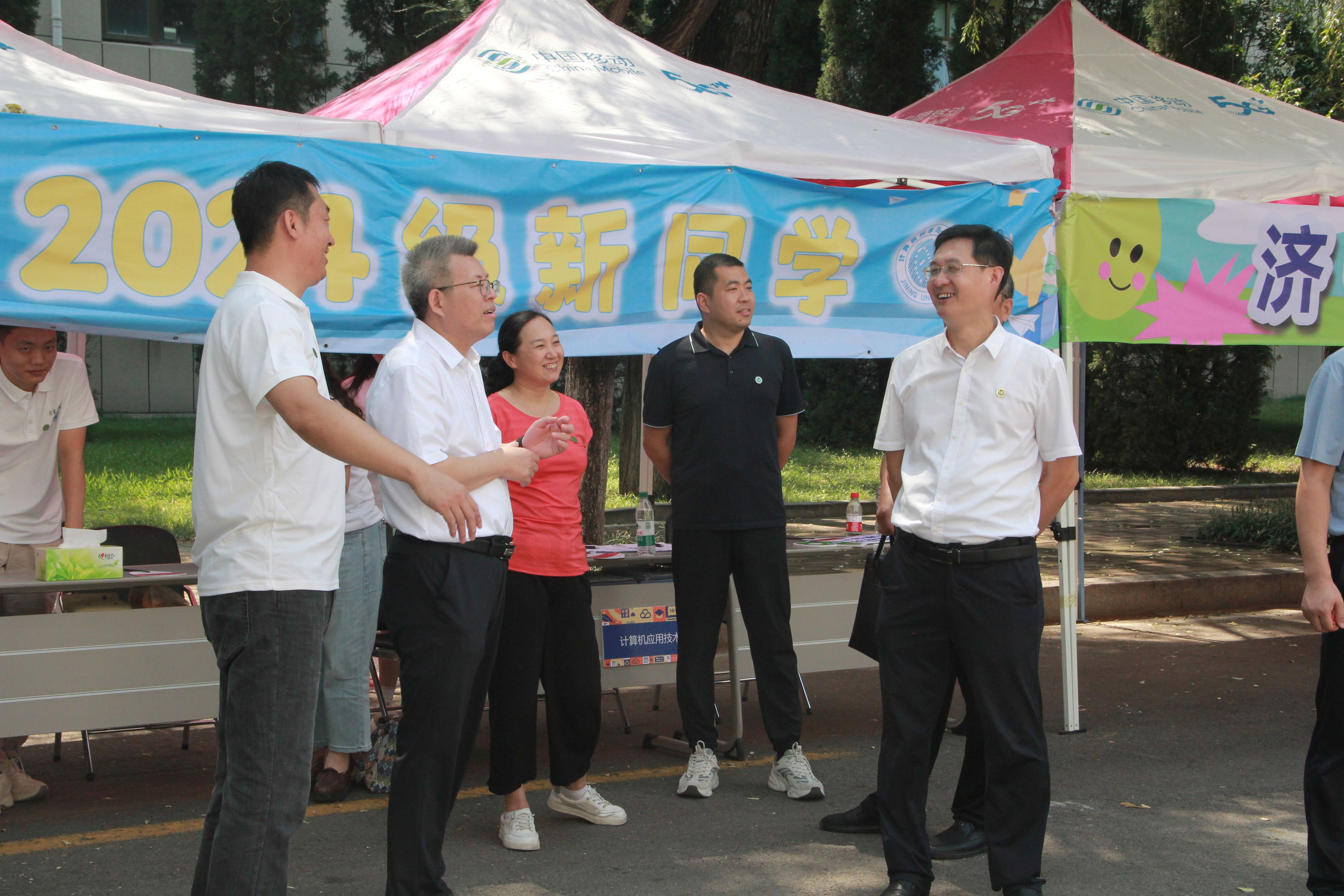 校领导深入迎新现场,与新生亲切交流并表示热烈欢迎。慰问工作人员和志愿者,了解报道情况。