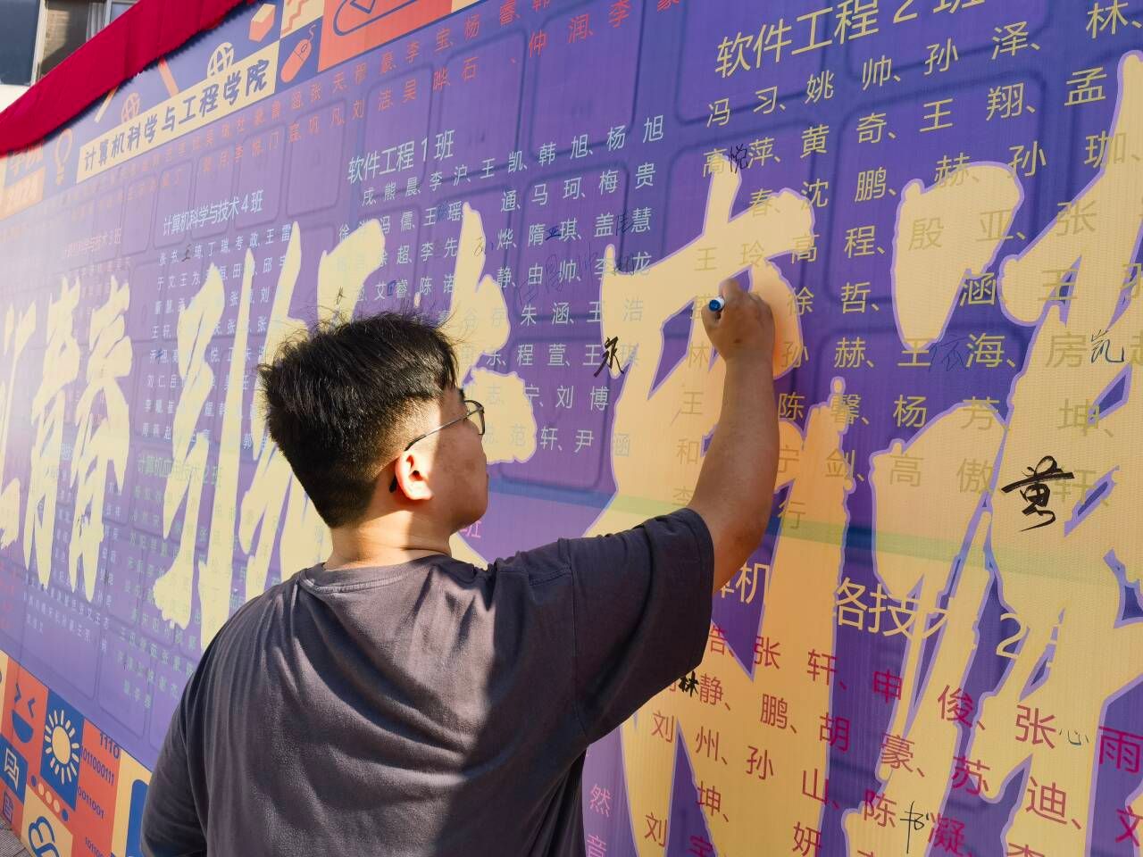 新学期新面孔,在签名墙留下独特的印记,按下快门,将靓丽的每一瞬悉数珍藏,人生的重要时刻。“小”学弟学妹也来到计科学院,心里埋下希望的种子,向未来出发。