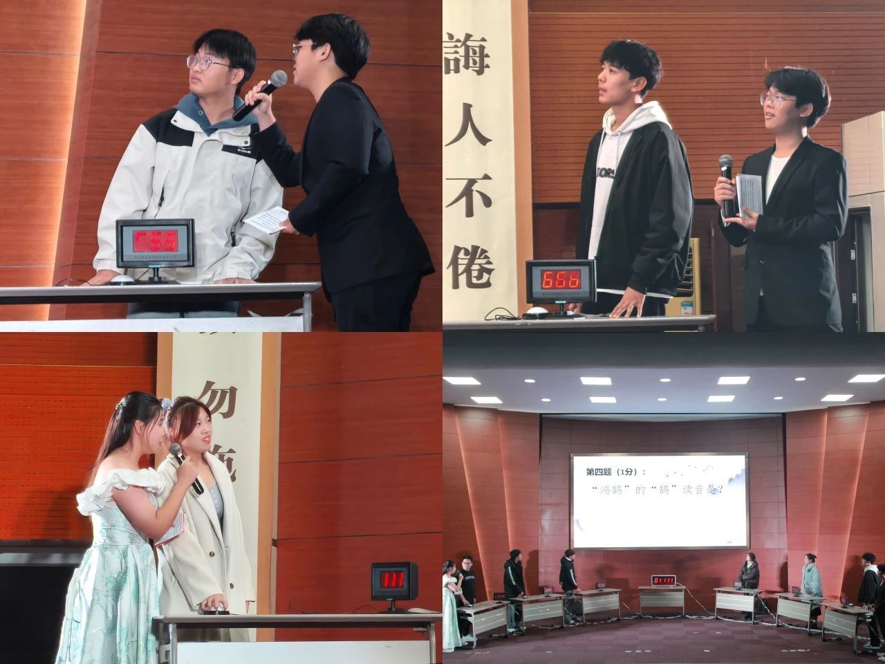 决赛在紧张而有活力的氛围中拉开帷幕。首先进行的是抢答赛。选手们思维敏捷,反应迅速,充分展现了出色的普通话水平和丰富的知识储备。紧接着,施天歌以一首《大城小爱》为比赛增添了一抹亮色。随后,选手们进行了情景模拟环节。这一环节充分考验了选手们的普通话表达能力。选手们根据给定的情境进行模拟对话,语言流畅、表达准确,赢得观众的阵阵掌声。然后,杨舒和都昀晓晨为大家带来了歌曲《泪桥》。经过各环节激烈角逐,选手们用实力征服全场观众。最后,评委老师为获奖选手依次颁奖。