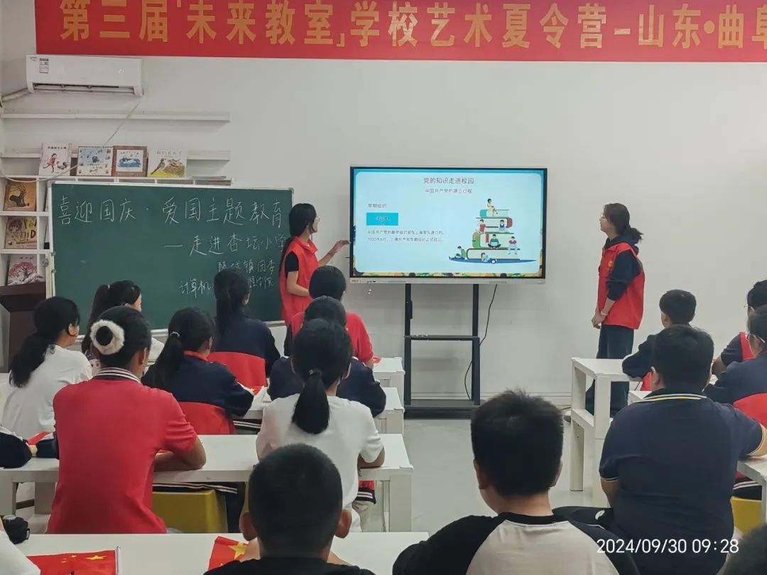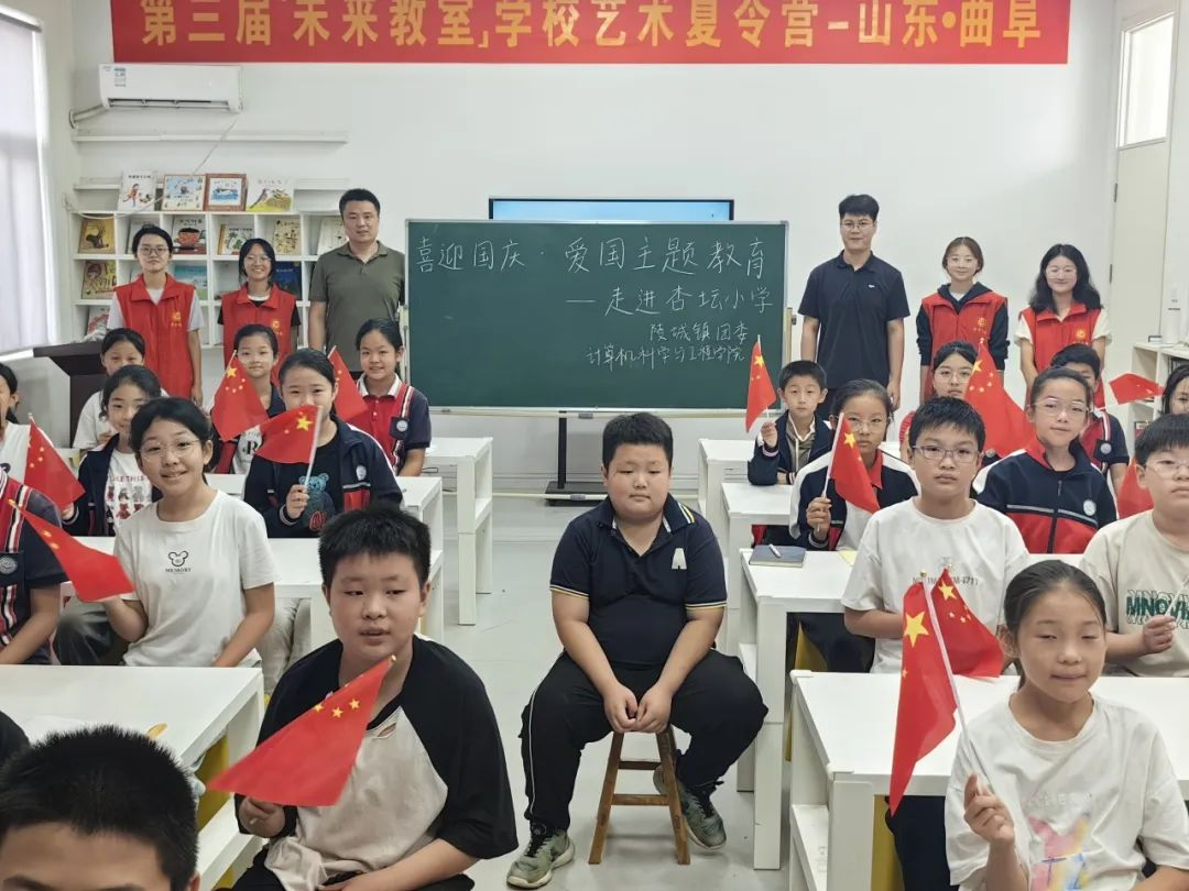 9月30日,bevitor伟德国际1946青年志愿者协会与陵城镇团委一起走进杏坛小学,开展爱国主题班会。