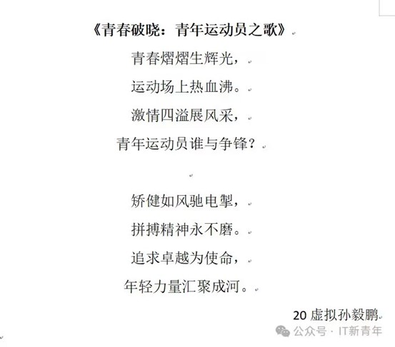 运动场上,青春的风采尽情飞扬,每个动作都充满着活力与激情,汗水挥洒间,是自我的挑战与突破。运动不仅仅是身体的锻炼,更是心灵的磨砺。活动期间,选手们或采用"诗歌"形式表达对运动者的赞美,或采用"图文结合"形式记录每一个精彩瞬间。