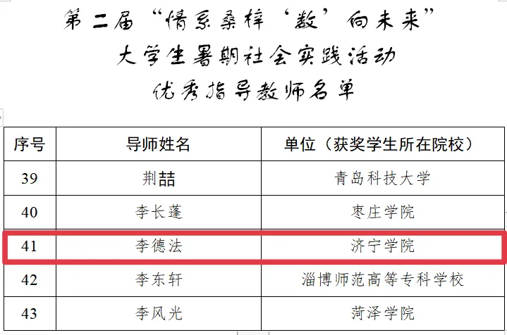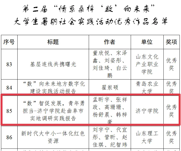 根据2024山东数字强省宣传月工作安排,山东省大数据局、共青团山东省委、省教育厅在全省组织开展了“情系桑梓,数向未来”大学生暑期社会实践活动。活动开展以来,得到了全省大、中、小学生的广泛关注和积极响应。经校遴选推荐,我院2022级孟昕宇、张祥政和2023级杨舒晨同学在《“数”智促发展,青年勇担当——伟德国际1946bv赴曲阜市实地调研实践报告》中荣获优秀奖。bevitor伟德国际1946辅导员李德法被评为优秀指导老师。