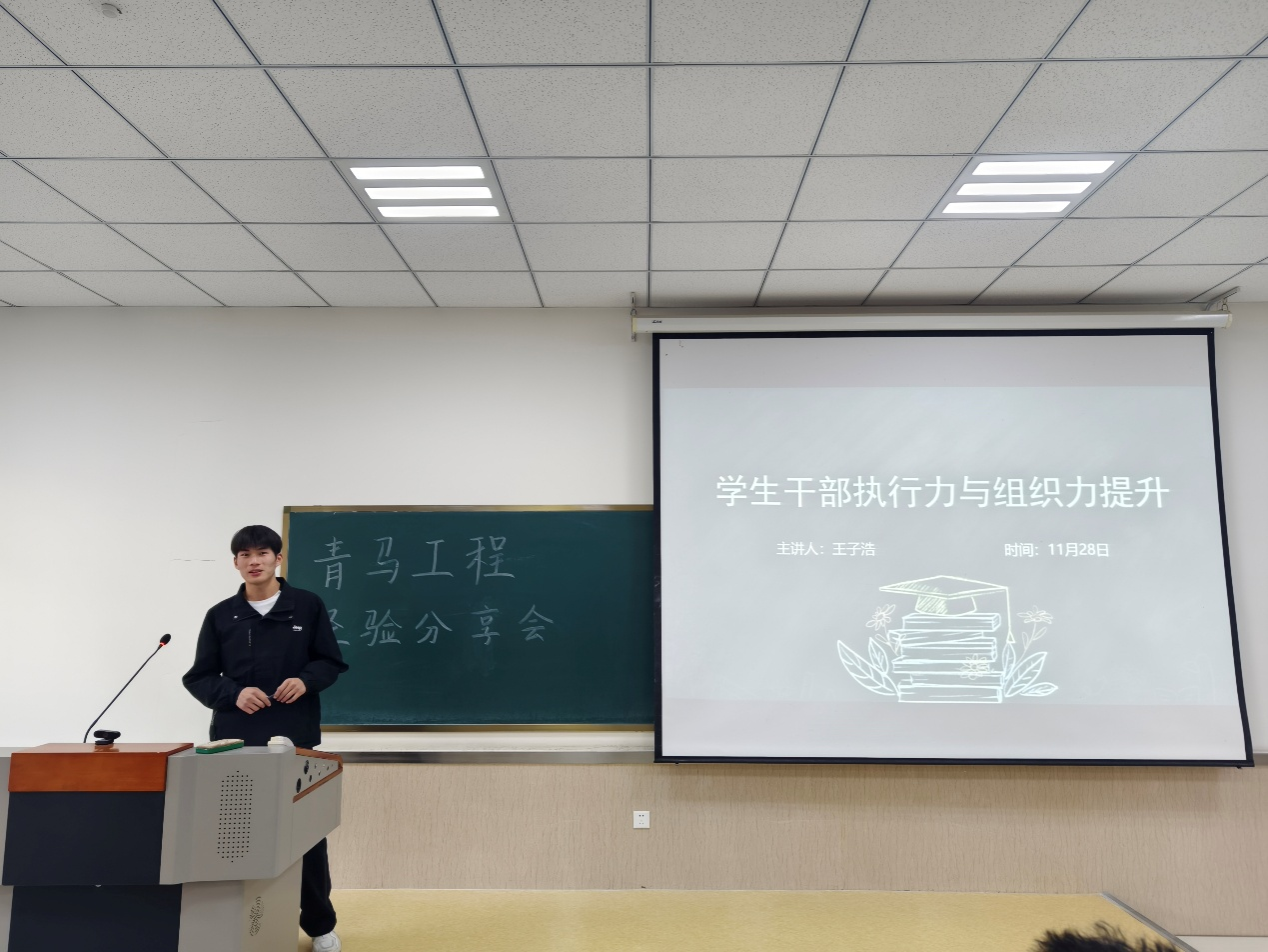 纪检部部长王子浩分享了他在工作中的独特见解。他指出,执行力是将想法转化为现实的关键力量,而组织力则是协调各方资源、实现共同目标的重要能力。他通过具体案例,生动地展示了如何通过高效的执行力和卓越的组织力,推动项目顺利进行并取得显著成果。