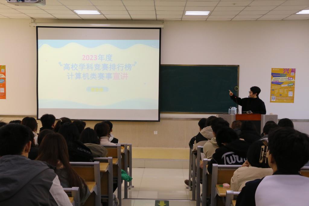 为大力推进学院“双创”工作落地生根,引导学生积极参与高校学科竞赛,全面提升学生综合素养,11月23日下午,数学与计算机应用技术学院在8号楼B202顺利开展2023年度高校学科竞赛计算机类赛事宣讲。本次讲座邀请学院学术副院长曹曼曼主讲,200余名计算机方向的同学参加。