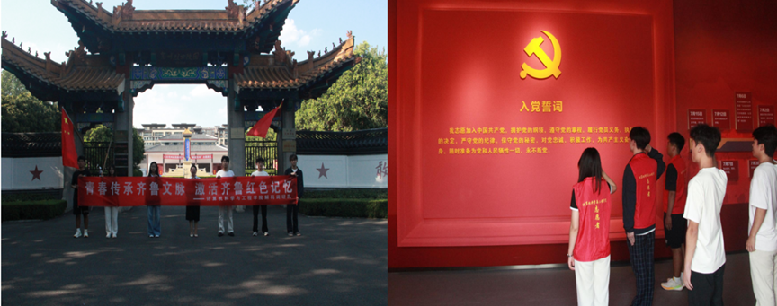 8月27日,调研团来到了兖州战役纪念馆,在工作人员的引导下,大家来到纪念馆序厅,映入眼帘的“解放兖州” 主题浮雕气势恢宏,瞬间将参观者带回解放战争时期那个战火纷飞的夏天。调研队全体队员来到纪念馆“英烈事迹展区” 的英烈名录墙前,举行庄重的重温入党誓词仪式。仪式由支部书记范建田主持,全体队员统一服装,面向鲜红的中国共产党誓词整齐列队,神情肃穆,庄重宣誓。领队老师范建田表示“这里的每一个细节都让队员深刻感受到革命先辈们为了民族解放、人民幸福,不畏牺牲、奋勇拼搏的英雄气概。”