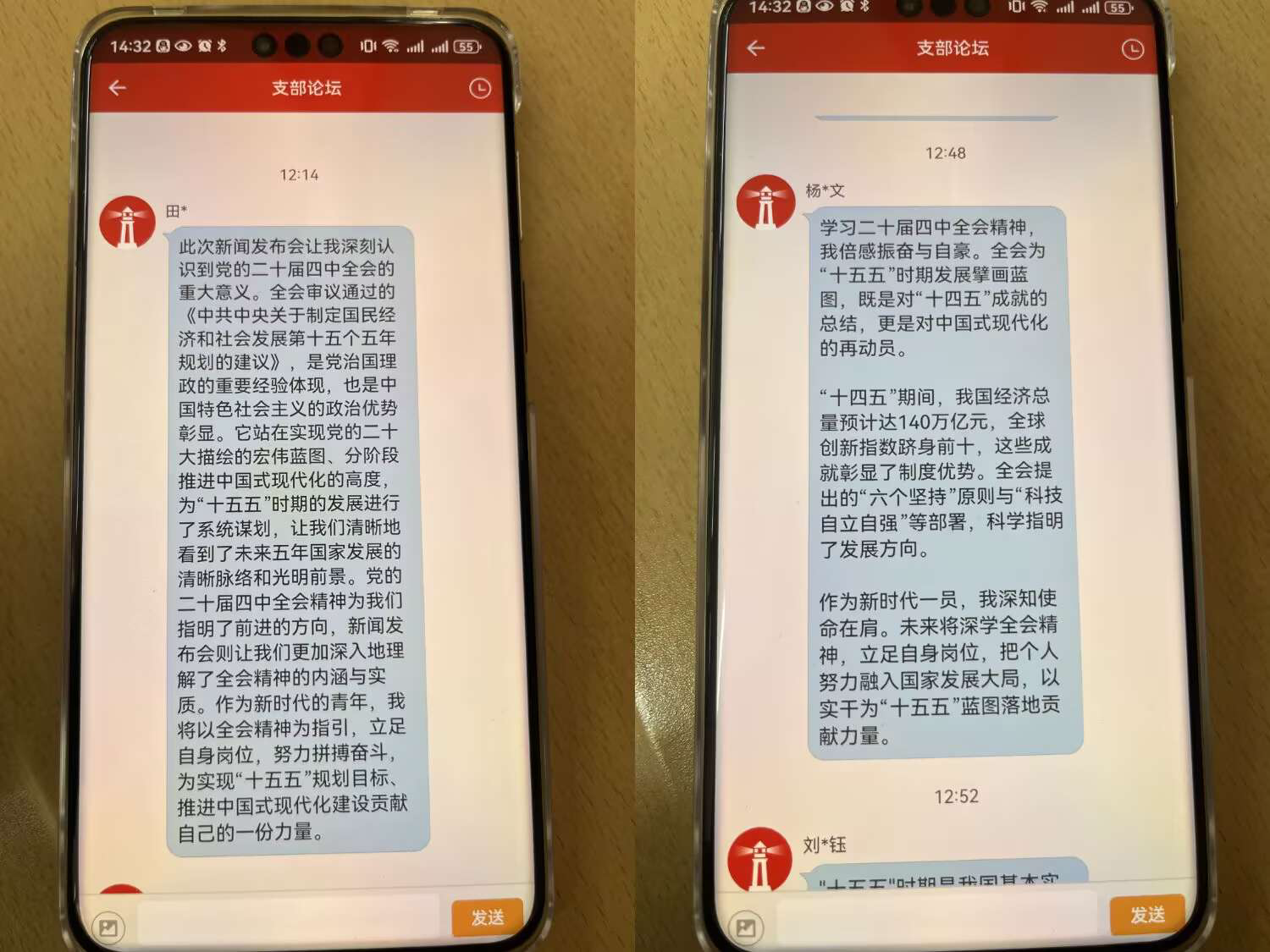 在集中学习方面,各班级、团支部组织开展专题研讨,引导学生围绕“科技自立自强”“新质生产力”等主题撰写心得、交流思想,深化对政策内涵的理解。
