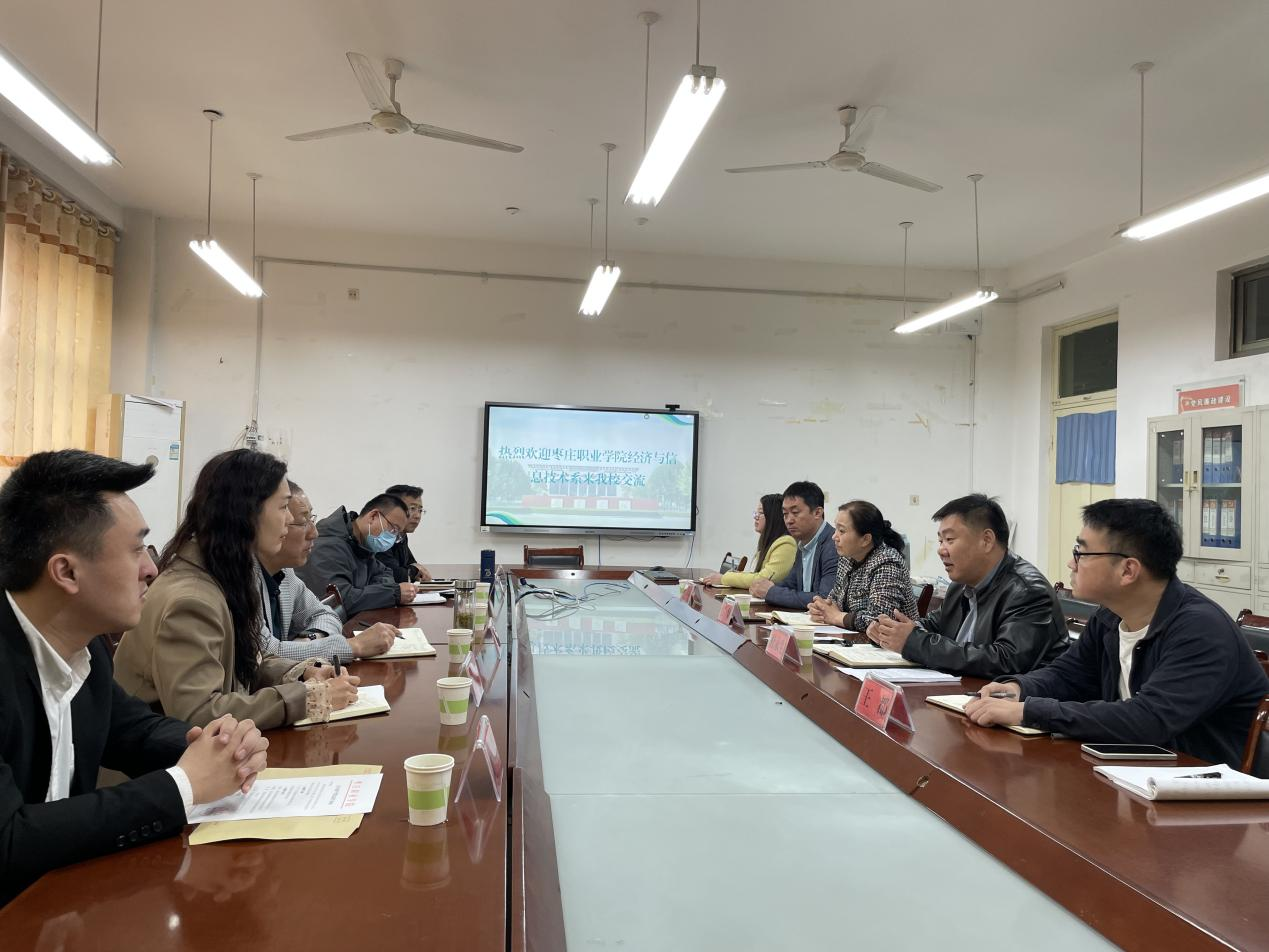 2024年4月3日上午,枣庄职业学院经济与信息技术系主任杜卫东一行4人来我院考察交流,学院党政班子代表出席会议,座谈会由学院党委副书记张颖主持。