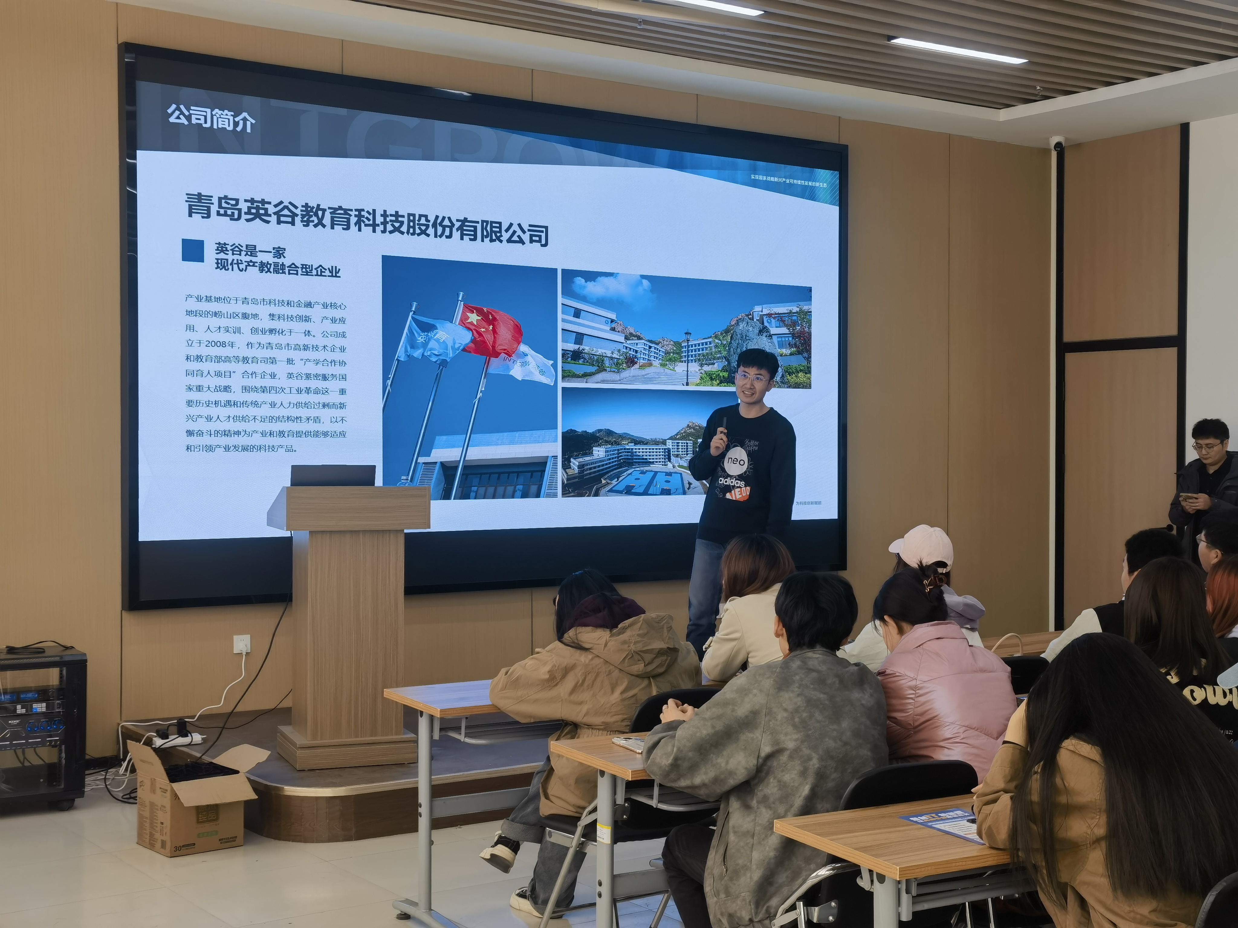 会议开场,王学峰通过互动了解同学们在考研、考公与就业选择上的困惑,介绍青岛英谷教育业务与理念,表明自己英谷教育大数据讲师身份与五年工作经验。随后,王学峰正式切入主题,深入剖析当前考研形势,通过考研人数增长趋势,直观展现考研竞争的激烈程度。紧接着他指出自由职业吸引毕业生利用专长承接线上项目,而慢就业是毕业生主动缓冲、探索提升的体现,并且鼓励同学们结合自身情况做出选择而不是盲目跟风,找到适合自己的毕业去向。最后,王学峰全面讲述了IT行业技术规划,他从宏观角度点明云计算、人工智能、大数据等前沿领域引领行业变革,结合实际案例讲解其应用价值,为同学们指明了发展方向。