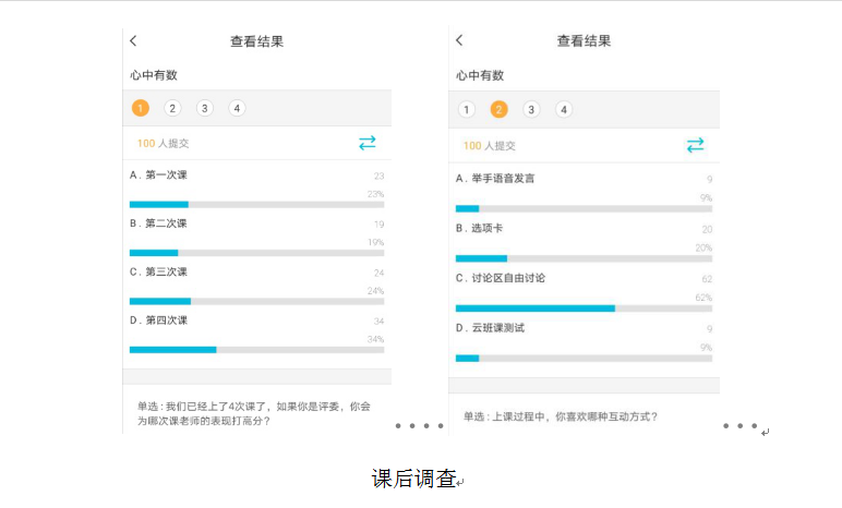 安排、督促学生看完视频后,完成课前测试题,在云班课或者智慧树中了解学生查看视频的情况和掌握程度。每次直播课上课前,我会分析学生课前测试情况,发现学生对概念性、记忆性知识掌握较好,理解、分析性知识点还需加强。这样在直播过程中,针对出错率较高的知识点进行重点讲解,大约10-15分钟左右进行一次互动,在腾讯课堂中我主要采用了讨论区、答题卡、举手等互动方式,智慧树翻转课堂中主要采用了抢答、投票等互动方式。通过查看腾讯课堂回放视频,我的体会是直播中的语速要比传统课堂语速慢一些,录制效果更好些;由于直播中的互动比传统课堂多些,进度慢些,直播中主要讲解重点内容,其他内容引导学生利用智慧树视频完成,教学内容的设计格外重要。课后在云班课和智慧树中安排了测试,了解学生线上上课效果。每上4次直播课,我会在云班课中开启“心中有数”调查,了解学生喜欢的互动方式、对直播课的满意程度等。数据表明,线上直播越来越得到学生的认可。