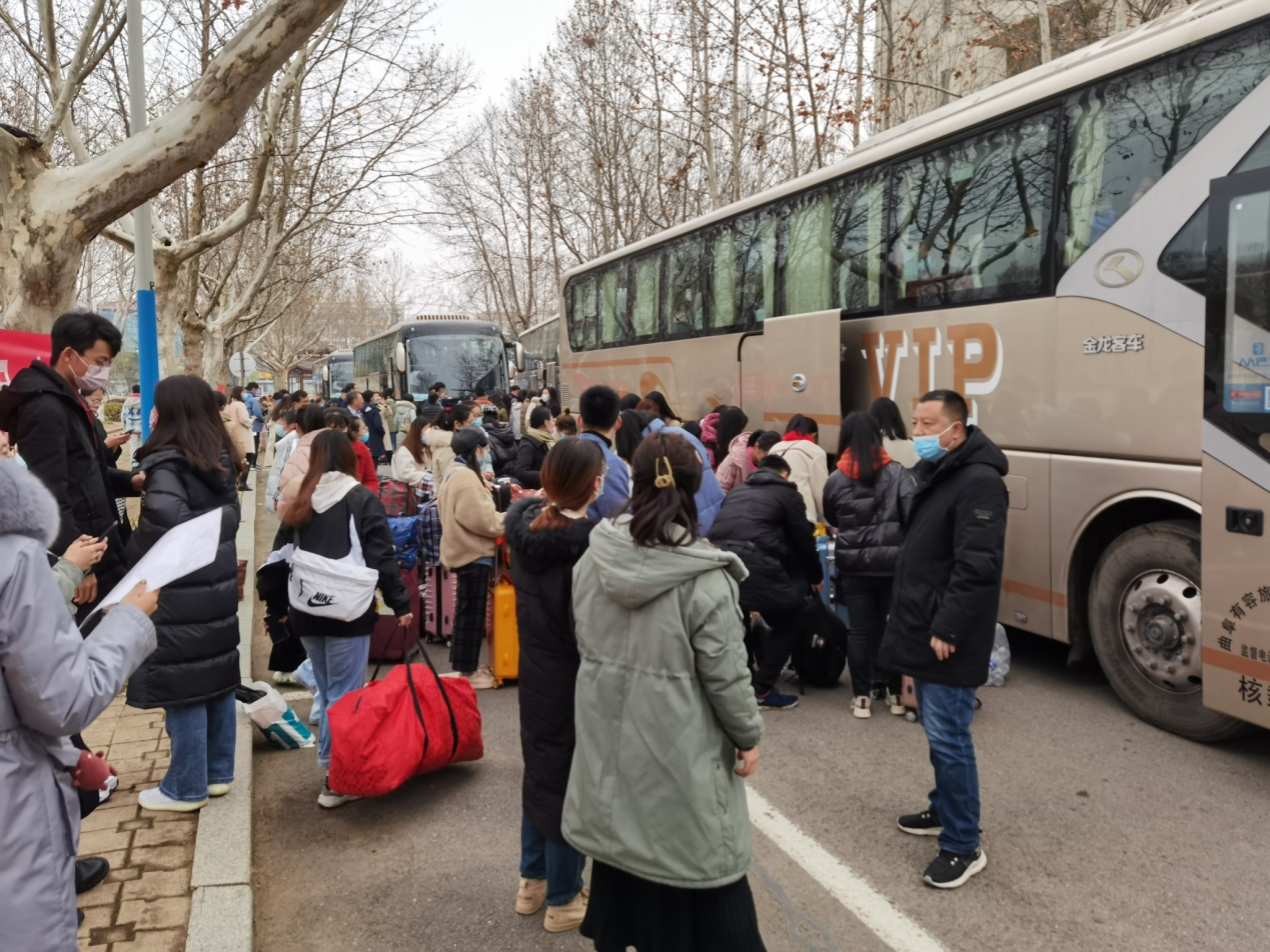 2021年2月28日上午,我系78名学生分赴济宁鱼台、汶上、梁山三县,开始为期一学期的实习支教工作。数学系党总支书记来维龙、系主任王绍峰,党总支副书记韩西莲、副主任黄长虹,团总支书记冯秉政,辅导员闫卓敏、张薇为实习支教的同学们送行。