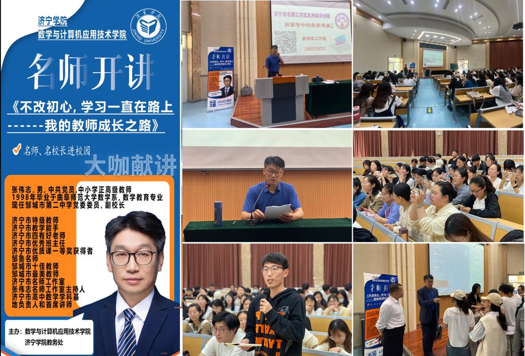 4月20日下午,数学与计算机应用技术学院在8号楼报告厅召开第二期“名师、名校长进校园”专题讲座。本次活动由数学与计算机应用技术学院和伟德国际1946bv教务处共同主办。张伟志校长做题为《不忘初心,学习一直在路上—我的教师成长之路》的报告。党委书记孙文、院长刘军、党委副书记冯秉政、副院长马小翠出席。师范类专业全体学生及相关辅导员参加。