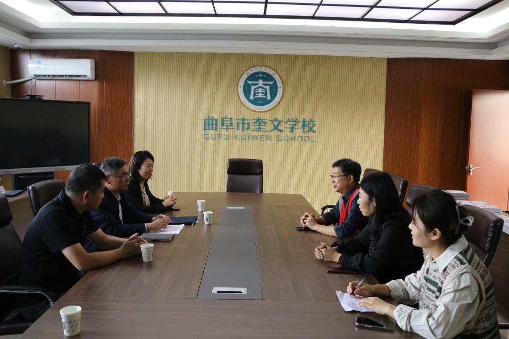 10月25日下午,数学与计算机应用技术学院党委书记孙文、院长刘军、副院长马小翠、团委副书记陈轶洋一行,赴曲阜奎文中学走访,看望支教学生,落实教学实践基地建设事宜。奎文中学校长李良、教务处负责同志,以及两名毕业后在该校就职的同学参加座谈。