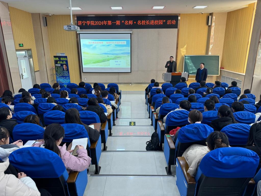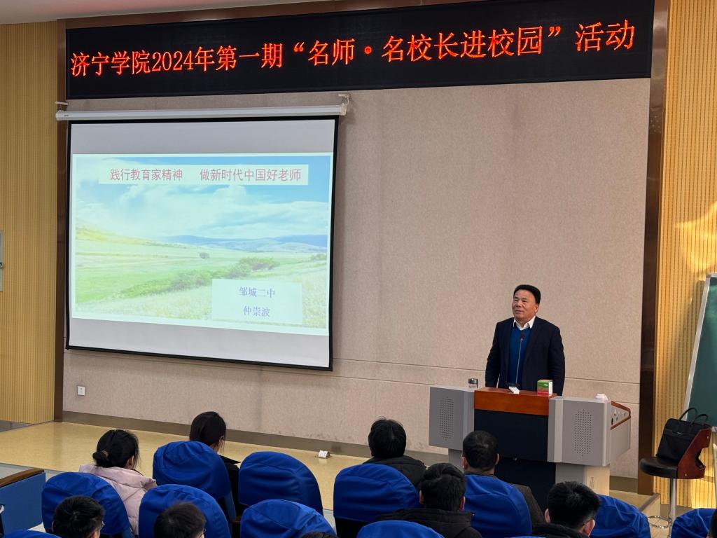 1月3日下午,学校在9D101教室举行“名师·名校长进校园”活动。活动由数学与计算机应用技术学院、学校教务处联合举办。讲座邀请邹城二中校长仲崇波主讲,邹城二中副校长张伟志、数学与计算机应用技术学院院长刘军、副院长马小翠、团委副书记陈轶洋、辅导员赵磊等出席。来自数学师范专业的近200名同学参加。