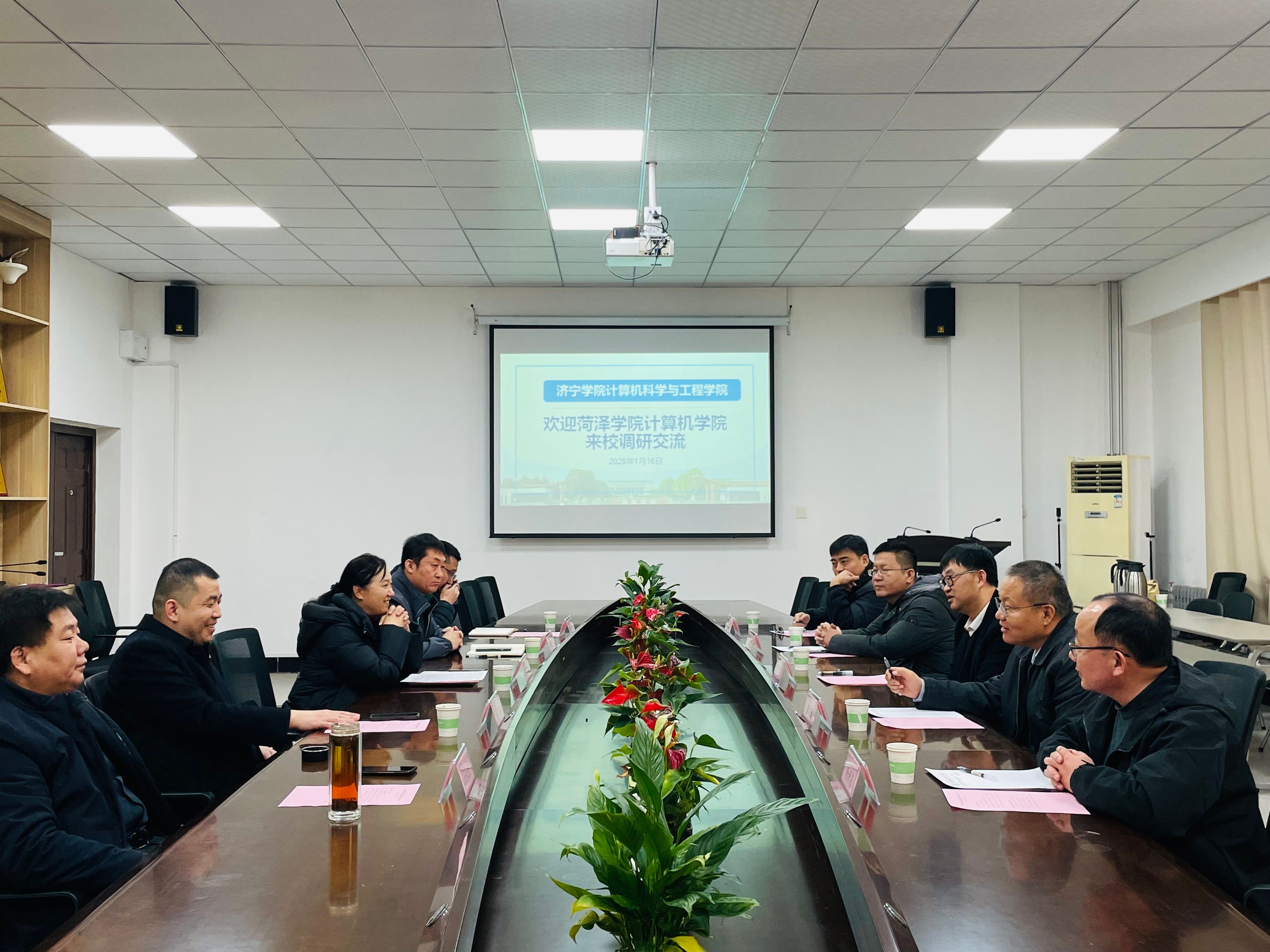 1月16日上午,菏泽学院计算机学院党委书记李庆江、副院长康鸿雁、物联网工程系系主任李进明、网络工程系系主任杨新泉、计算机科学系主任刘文锋一行5人来我院调研交流。学院院长刘军、党委副书记张颖、党委副书记冯秉政、副院长杜永生、学术副院长翟鹏参加座谈会。