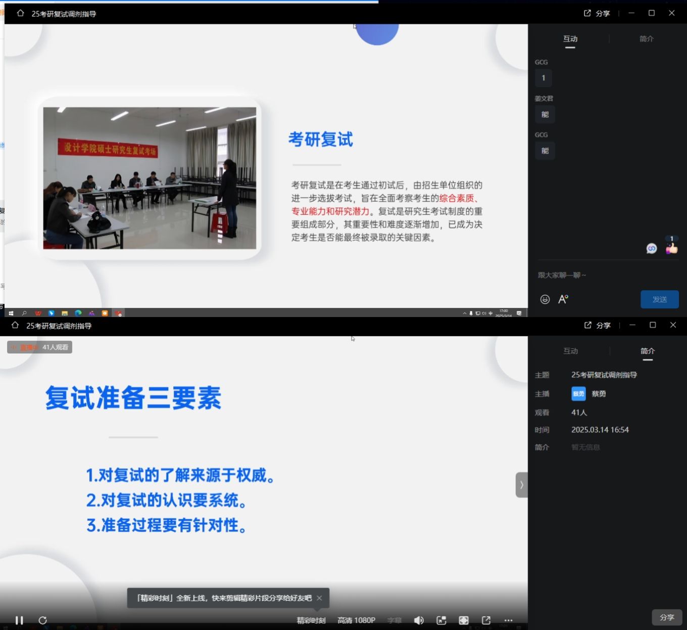 3月14日下午,bevitor伟德国际1946通过钉钉线上会议的方式,举办如何准备考研复试和调剂宣讲会,为即将面临复试与调剂的同学们答疑解惑。本次宣讲会特别邀请了经验丰富的蔡勇老师为主讲,为同学们提供专业的指导与建议。