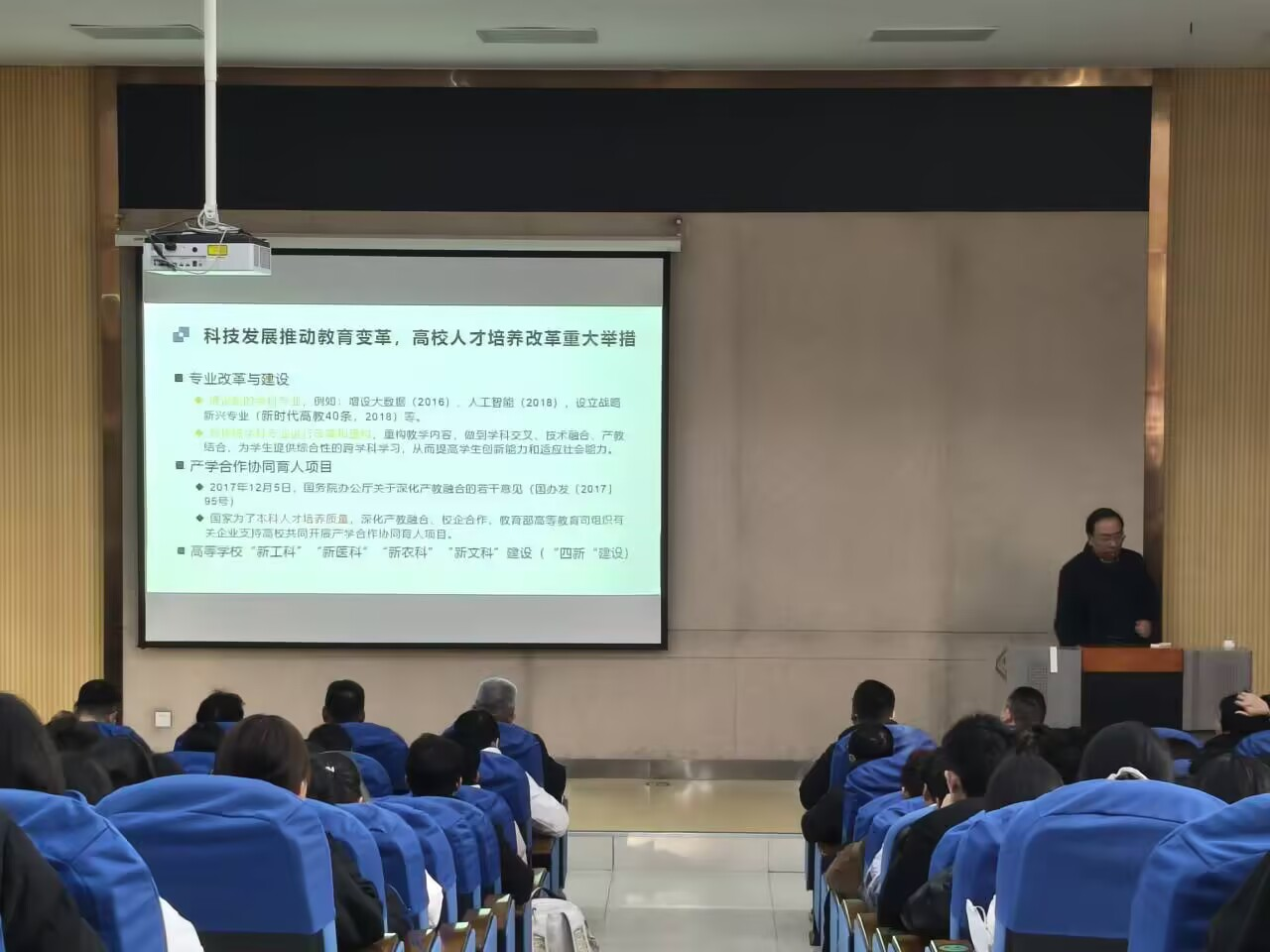 为主动对接人工智能时代发展需求,探索课程建设与教学改革新路径,12月10日下午bevitor伟德国际1946举办“AI赋能高校智慧课程建设与教学模式改革”专题大讲堂。本次活动特邀山东大学博士生导师郝兴伟教授担任主讲,学院院长李鹏、副院长翟鹏、团委副书记李德法出席,学科带头人、骨干教师及学生代表共同参加。